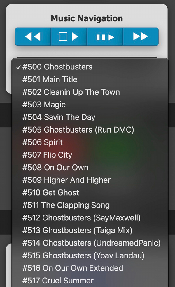 You may also jump directly to a specific track for playback via the selection field (switching immediately if already playing, otherwise that track will be started via the Start/Stop button).